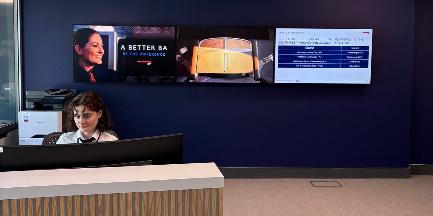CleverLive enables British Airways’ communications and facilities teams to update and manage content instantly across all displays from anywhere in the world.